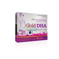 Gold DHA to suplement diety w postaci kapsułek płynnych Flow Caps uzupełniający dietę kobiet ciężarnych i karmiących piersią w kwas DHA z grupy kwasów tłuszczowych omega-3 i kwas foliowy, który przyczynia się do wzrostu tkanek matczynych w czasie ciąży.