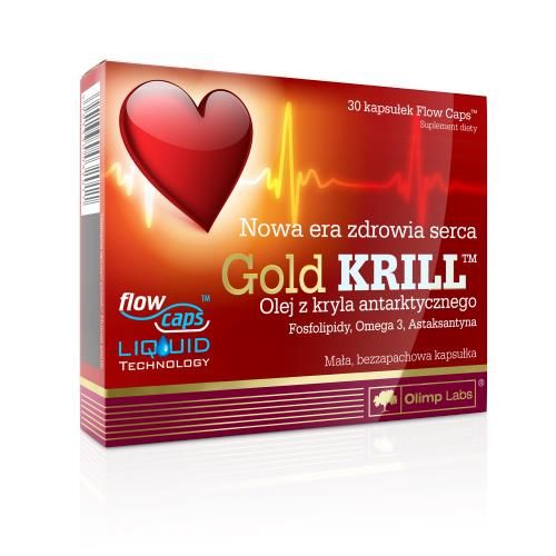 Gold Krill to suplement diety zawierający wysokiej, jakości olej z kryla antarktycznego Euphausia superba, pochodzącego z najczystszych wód Ziemi, bogaty w niezbędne nienasycone kwasy tłuszczowe omega-3, fosfolipidy oraz astaksantynę - składniki wspierające prawidłowe funkcjonowanie pracy serca oraz układu krążenia. Kwasy omega-3 w oleju z kryla występują w niespotykanym gdzie indziej połączeniu z fosfolipidami, które zwiększają ich biodostępność w organizmie. Dodatkowo preparat wytwarzany jest w innowacyjnej technologii – Flow Caps™Liquid Technology - gwarantującej maksymalnie szybkie wchłanianie w organizmie, świeżość oraz brak nieprzyjemnego zapachu charakterystycznego dla oleju z kryla.