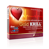 Olimp Gold Krill to innowacyjny preparat, stworzony z myślą o Twoim sercu! Suplement stanowi bogate źródło kwasów tłuszczowych Omega-3 pozyskiwanych z najwyższej jakości oleju kryla antarktycznego Euphausia Superba, dostarczającego naszemu sercu wszystkich niezbędnych składników, odpowiedzialnych za jego prawidłową pracę i funkcjonowanie. Ponadto, Olimp Gold Krill został dodatkowo wzbogacony zawartością cennych flawonoidów, dzięki którym suplement zwiększył swoją biodostępność, stając się jeszcze lepiej przyswajalnym dla naszego organizmu! Stała suplementacja Olimp Gold Krill pomaga utrzymać prawidłowy cholesterol HDL i LDL, wpływa korzystnie na krzepliwość krwi, a będąc silnym antyoksydantem, neutralizuje również szkodliwe działanie wolnych rodników! Produkt dostępny w postaci łatwych do połknięcia kapsułek, ułatwiających codzienne dawkowanie.