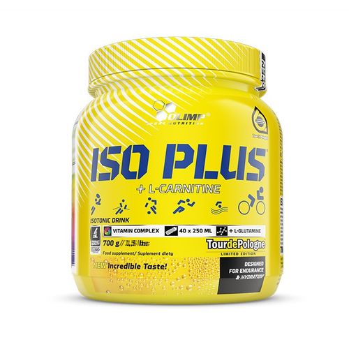 ISO PLUS® to starannie skomponowany koncentrat w proszku do przyrządzania napoju izotonicznego, który intensywnie i w maksymalnym stopniu nawadnia organizm, przywracając mu równowagę wodno-elektrolitową podczas i po wysiłku. Specjalna receptura izotoniczna została wzbogacona L-karnityną i L-glutaminą, które dodatkowo wspomagają organizm w trakcie długotrwałego wysiłku fizycznego. Dodatek witamin uzupełnia zwiększoną ich utratę z organizmu w trakcie treningu.