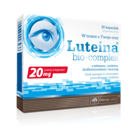 Suplement diety Olimp Luteina Bio Complex to bogate źródło wysokoskoncentrowanej luteiny, wspierającej pracę oraz zdrowie naszych oczu, oraz pozostałych składników aktywnych, jak witamina C, selen, cynk czy tauryna, które dodatkowo wzmacniają pozytywny wpływ preparatu na narząd widzenia i nie tylko. Suplementacja Olimp Luteina Bio Complex poprawia ostrość widzenia, ochraniając nasze oczy przed szkodliwą działalnością wolnych rodników oraz nadmierną ilością światła, wzmacnia odporność organizmu, a także eliminuje wolne rodniki, wykazując działanie neutralizujące. Co więcej, zawartość witaminy C w preparacie wspiera naturalną produkcję kolagenu w organizmie, usprawnia proces wchłaniania żelaza, oraz działa bakteriobójczo. Wraz z Olimp Luteina Bio Complex dostarczysz swoim oczom składników niezbędnych do zachowania ich zdrowia oraz prawidłowej pracy! Produkt dostępny w formie łatwych do połknięcia kapsułek.