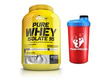 OLIMP Pure Whey Isolate 95 jest najwyższej jakości, wolnym od laktozy, czystym izolatem białek serwatkowych (WPI), wzbogaconym kompleksem witamin i składników mineralnych, zapewniających prawidłowy przebieg procesów metabolicznych przy zwiększonym wysiłku fizycznym i zwiększonym spożyciu białek. Izolaty białek serwatkowych charakteryzują się najwyższą wartością odżywczą i aktywnością anaboliczną spośród wszystkich białek pokarmowych. Pozyskiwane białka w procesie mikrofiltracji CFM , nie denaturowane, zachowują pełną strukturę i aktywność funkcjonalnych białek serwatkowych - beta laktoglobuliny, alfa laktoalbuminy, immunoglobuliny, albuminy osocza, laktoferyny, laktotransferyny, ceruloplazminy, fosfoglikoproteiny, proteazy i peptonów. Wysoka wartość odżywcza i aktywność anaboliczna sprawiają, że izolowane białka serwatkowe uznano za najwartościowsze źródło białka pokarmowego dla sportowców wyczynowych i osób aktywnych ruchowo. Wysoką wartość odżywczą zawdzięczają najwyższej, możliwej przyswajalności, warunkowanej idealną rozpuszczalnością i korzystnym ciśnieniem osmotycznym nie denaturowanych białek oraz optymalnym proporcjom aminokwasów egzo- i endogennych z wyjątkowo wysokim udziałem aminokwasów rozgałęzionych (BCAA) i glutaminy. Na wysoką aktywność anaboliczną, oprócz wysokiej wartości odżywczej, wpływają cechy metaboliczne całych białek serwatkowych oraz powstających w efekcie ich przemian peptydów i mikropeptydów. Substancje te działają podobnie do peptydowych, anabolicznych czynników wzrostowych. Ułatwiają transport aminokwasów do komórek mięśniowych i stymulują anabolizm. Tworzą barierę antyoksydacyjną. Stabilizują lizosomy i hamują aktywność katabolicznych enzymów lizosomalnych