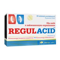REGULACID™ to suplement diety w postaci tabletek powlekanych. Zawiera naturalne wyciągi roślinne, zasadowe sole wodorowęglanów i kwasu cytrynowego wchodzące w reakcje z kwasami oraz cynk w formie wysoko przyswajalnego chelatu aminokwasowego Albion®, a także inne minerały i witaminy.