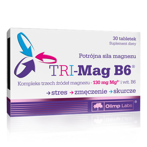 Suplement diety Olimp Tri-Mag B6 to innowacyjne połączenie aż trzech różnych źródeł magnezu, odznaczających się odmienną kinetyką wchłaniania, oraz dodatku witaminy B6, dla jeszcze lepszego działania! Magnez jest związkiem niezbędnym dla zachowania zdrowia organizmu, warunkującym jego prawidłowe funkcjonowanie. Jego niedobór może powodować duże problemy z pamięcią i koncentracją, utrudniać naukę, a także wpływać na spadek nastroju, powodować zaburzenia rytmu serca oraz być przyczyną bolesnych skurczy mięśni. Na szczęście, dzięki Olimp Tri-Mag B6 zapomnisz, czym jest niedobór tego związku, zapobiegając mu teraz i w przyszłości! Nie bez znaczenia jest tutaj również różnorodna kinetyka wchłaniania wykorzystanych do produkcji suplementu trzech źródeł magnezu, jako że determinuje ona utrzymanie optymalnego poziomu tego pierwiastka w naszym organizmie. Wraz z Olimp Tri-Mag B6 wesprzesz funkcje psychologiczne, których prawidłowe utrzymanie ma szczególne znaczenie podczas intensywnej pracy umysłowej oraz nauki, wspomożesz pracę mięśni, zapobiegając ich bolesnym skurczom, oraz wspomożesz prawidłową syntezę białek ustrojowych! Produkt dostępny w postaci łatwych do połknięcia tabletek.