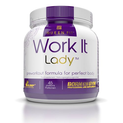 WORK IT LADY™ to proszek o wysokiej koncentracji składników idealnie nadających się do zastosowania zarówno przed profesjonalnym treningiem jak i każdym rodzajem wysiłku fizycznego! W trosce o Twoje samopoczucie WORK IT LADY™ uzupełniono o zestaw aminokwasów – w tym β-alaninę, L-tyrozynę, L-glutaminę oraz aminokwasy rozgałęzione BCAA (L-leucyna, L-izoleucyna, L-walina). Dodatkowo WORK IT LADY™ zawiera składniki roślinne takie jak: Sinetrol®, kofeinę i ekstrakt malin oraz dodatkowo L-karnitynę, glukuronolakton, kwas hialuronowy i ekstrakt zielonej herbaty, który zadba o odpowiednią stymulację fizyczną. Zawarte w preparacie składniki witaminowe i mineralne wzajemnie wspierają swoje działanie i przyczyniając się między innymi do:
