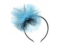 Opaska wykonana z plastiku z ząbkami w kolorze czarnym. Do opaski przymocowany jest tiulowy kwiat w kolorze niebiesko - czarnym.