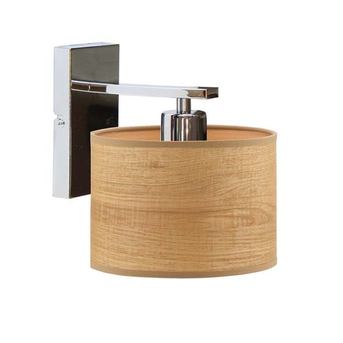 Geometryczna podstawa lampy wykonana została z metalu i dostępna jest w kilku kolorach (biały, czarny, chrom, stal szczotkowana, stare złoto). Natomiast cylindryczny abażur o wymiarach 17 x 12 cm został wyprodukowany z materiału PVC odwzorowującą strukturę drewna tzw. fornir dostępny w 1 z 4 ubarwień (dąb bielony, orzechowy, dąb sonoma oraz kasztanowy).