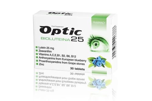 Specjalnie dobrane składniki OPTIC BIOLUTEINA 25 takie jak cynk, ryboflawina oraz witamina A pomagają w utrzymaniu prawidłowego widzenia. Dodatkowo witamina C, witamina E, cynk, selen oraz ryboflawina pomagają w ochronie komórek całego organizmu przed stresem oksydacyjnym. Preparat zawiera witaminy: C, B6, B12 oraz ryboflawinę, które przyczyniają się do zmniejszenia uczucia zmęczenia i znużenia. OPTIC BIOLUTEINA 25 jest również źródłem zeaksantyny, antocyjanów borówki czernicy, proantocyjanidyn z pestek winogron, witaminy B1 oraz luteiny o wyższej zawartości. Zawarty w preparacie beta-karoten jest łatwo przyswajalną formą witaminy A. Naukowo udowodniono, że suplementacja witaminy A oraz ryboflawiny i cynku przyczynia się do utrzymania prawidłowego wzroku.