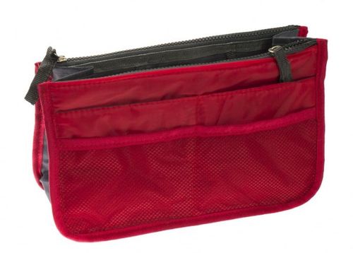 Organizer do torebki posiada dwie kieszenie zamykane na zamek, jedną dużą kieszeń, 10 małych kieszonek.
