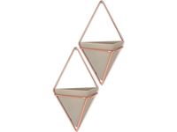 Zestaw organizerów Trigg marki Umbra to doskonałe rozwiązanie dla osób, które szukają alternatywy dla klasycznych doniczek. Mosiężna rama idealnie współgra z ceramiczną doniczką w geometrycznum stylu. Projektantka Moe Takemura tworzy niepowtarzalne rzeczy, które łączą ze sobą szwedzką prostotę z japońskim, eleganckim minimalizmem.Linia Trigg zaprojektowana przez Moe Takemurę zawiera przedmioty, które łączą ze sobą funkcjonalność z cechami dekoracyjnymi. Wyraźne inspiracje trendami geometrycznymi i przestrzennymi to element charakterystyczny dla produktów z tej kolekcji.W zestawie znajduje się 2 szt. doniczek o wymiarach 10,1 x 5 x 17,8 cm. Wysokość: 19