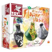 Opakowanie zawiera wszystkie niezbędne materiały: 3 ceramiczne wazoniki, farbę akrylową, farby temperowe w 6 kolorach, pędzelek, bibułki, papierowe łodyżki, instrukcję.
