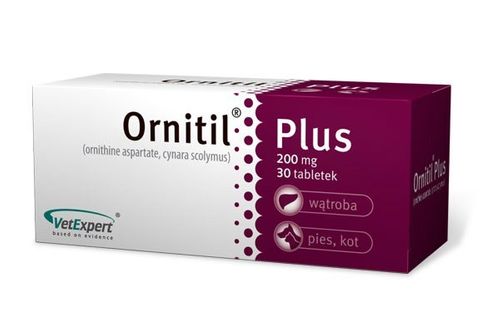 Ornitil®Plus stosuje się u psów i kotów. Preparat zalecany w celu wspomagania funkcji wątroby w przypadkach niewydolności oraz zaburzeń czynnościowych.