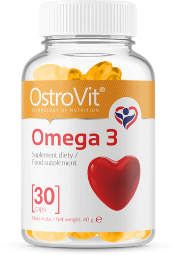 Kwasy tłuszczowe omega-3 są niezbędne zachowania optymalnego samopoczucia i stanu zdrowia. Znajdują się w warstwach tłuszczowych ryb zimnowodnych i skorupiaków, olejach roślinnych i orzechach. Dostarczają one cenny kwas eikozapentaenowy (EPA) i kwas dokozaheksaenowy (DHA), które są najczęściej promowane w kierunku wsparcia prawidłowej pracy serca. Produktu Omega 3 został dodatkowo wzbogacony o witaminę E, w celu nasilenia właściwości obecnych w odżywce kwasów tłuszczowych. Omega-3 normalizuje i reguluje poziom cholesterolu. Korzystnie wpływa na serce, mózg i naczynia krwionośne. Dodatkowo wpływa na kondycję umysłową, zdolność uczenia się, zapamiętywania i koncentracji. Omega 3 marki OstroVit kompleksowo wspiera pracę organizmu. Silnie skoncentrowany olej rybi znajduje się w wygodnych w użyciu kapsułkach żelowych.