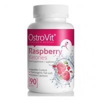 OstroVit Raspberry Ketones to suplement będący źródłem ketonów malinowych. Ketony malinowe to naturalne związki fenolowe będące składnikiem nadającym smak i zapach malin. Są skutecznym związkiem przyspieszającym redukcję masy ciała, zwiększającym przemianę materii, zmniejszającym absorpcję tłuszczu oraz stymulującym produkcję i działanie noradrenaliny i adiponektyny.