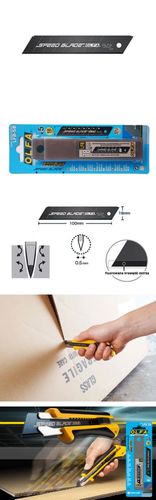 SPEED BLADE podczas cięcia kartonu generuje 50% mniejszy opór cięcia. W praktyce oznacza to, że ostrze to tnie karton 2 razy szybciej od ostrza LBB ! Nazwa „SPEED BLADE” naniesiona jest laserem na każde ostrze, aby nie pomylić ich z ostrzami LBB. Pasuje do wszystkich rękojeści OLFA na ostrza 18mm. W pakowanym na blisterze pojemniku znajduje się 5 ostrzy.