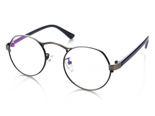 optyka. Owalne, małe soczewki. Wysoko osadzony mostek. Plastikowe