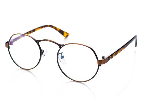 optyka. Owalne, małe soczewki. Wysoko osadzony mostek. Plastikowe