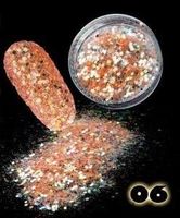 Mix pyłu o dużej, średniej i małej drobinie z dodatkiem holograficznej poświaty.