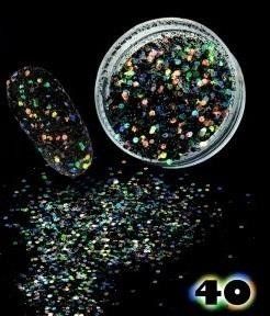 Mix pyłu o dużej, średniej i małej drobinie z dodatkiem holograficznej poświaty.