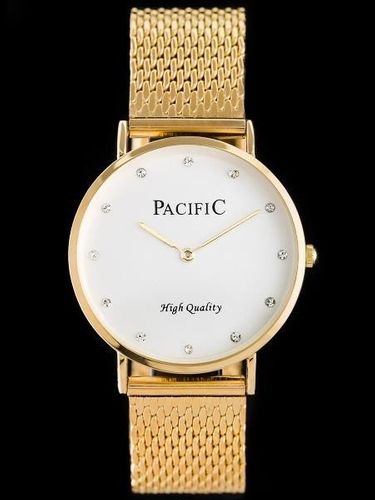 Kolorystyka: bransoleta i koperta w kolorze złotym, tarcza w kolorze srebrnym zdobiona cyrkoniami, wskazówki w kolorze złotym