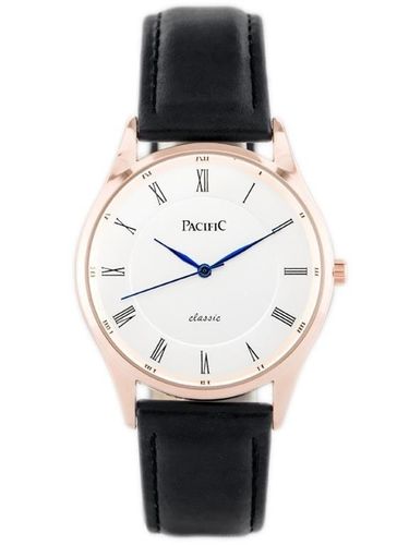 Kolorystyka: pasek w kolorze czarnym, koperta w kolorze rosegold, tarcza w kolorze srebrnym, wskazówki w kolorze niebieskim