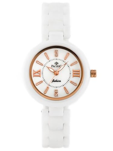Kolorystyka: bransoleta i koperta w kolorze białym, tarcza w kolorze perłowym, ring i indeks w kolorze rosegold