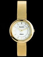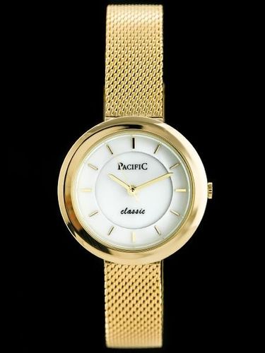 Kolorystyka: bransoleta i koperta w kolorze złotym, tarcza w kolorze perłowym, wskazówki w kolorze srebrnym