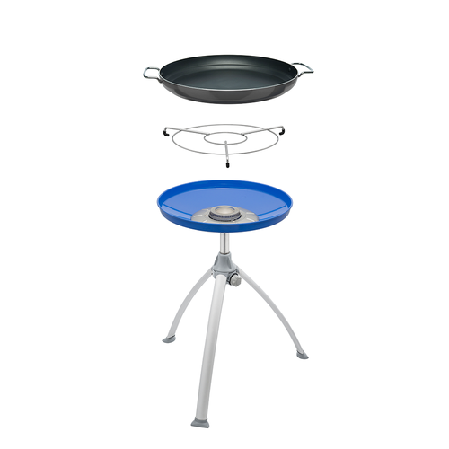 W wyposażeniu standardowym zamiast słynnego woka CADAC Skottel znajdziemy dużą aluminiową misę (47cm) z nieprzywierająca powłoką do paelli