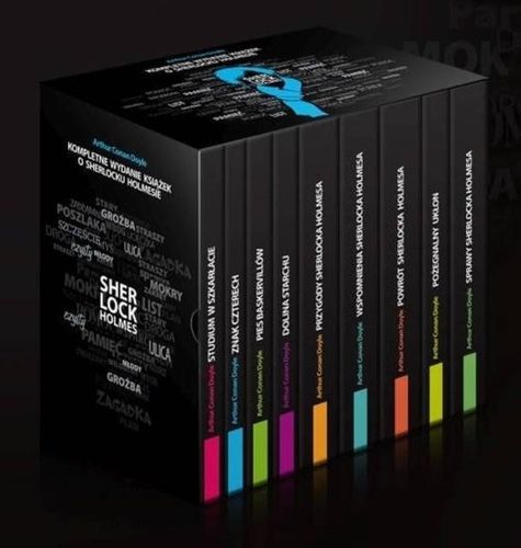 Kompletne 9-tomowe wydanie wszystkich książek o Sherlocku Holmesie1. Studium w szkarłacie2. Znak czterech3. Dom Baskerwillów4. Dolina Strachu5. Przygody Sherlocka Holmesa6. Wspomnienia Sherlocka Holmesa7. Powrót Sherlocka Holmesa8. Pożegnalny ukłon9. Sprawy Sherlocka Holmesa