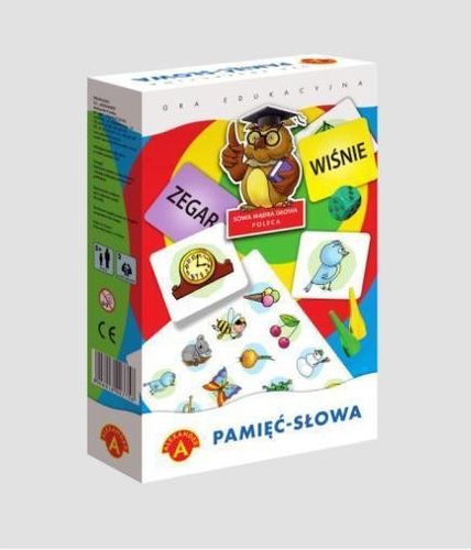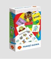 W grze" Pamięć - słowa" wygrywa ten, kto najlepiej zapamięta położenie odpowiednich par, odkrytych na chwilę, spośród wszystkich tabliczek leżących na stole rewersem do góry.Gra skierowna jednocześnie do dzieci i dorosłych ,jest świetnym treningiem pamięci i spostrzegawczości. Gracze najmłodsi przy okazji ćwiczą kojarzenie obrazu ze słowem. Gra ma również drugi rozbudowany wariant z dodatkowymi rekwizytami, wzbogacająymi atrakcyjność i emocje podczas zabawy.