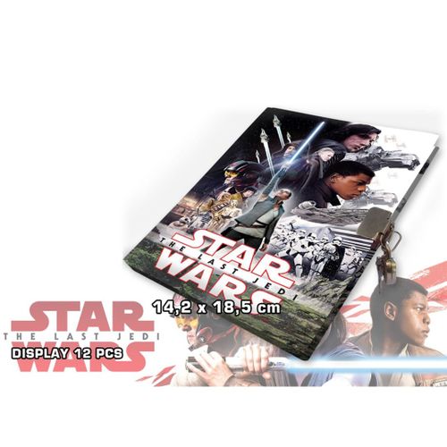 Rewelacyjny pamiętnik wykonany z licencją Star Wars. Zaprojektowany w formacie A5 z ozdobnymi kartkami. Posiada usztywnianą okładkę i zabezpieczającą przed otwarciem kłódkę. Fantastyczny wzór z kultowego filmu, bez wątpienia spodoba się każdemu.