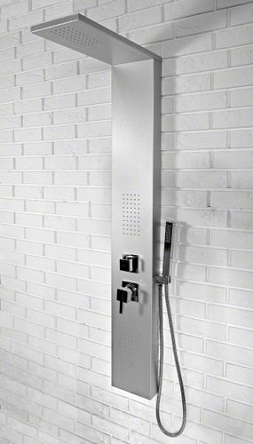 Panel natryskowy 9750 to nowoczesny, funkcjonalny produkt będący alternatywą do tradycyjnych zestawów natryskowych. Konstrukcja z aluminium przyciąga oko i stanowi element dekoracyjny wystroju wnętrza. Stylowe pokrętło umożliwia wybór źródła strumienia wody pomiędzy deszczownicą , słuchawką i dyszami ciśnieniowymi. Dysze wyposażone są w system Anti-Calc. Typ Panel NatryskowyKolorSrebrnyMontażŚciennyGłowicaCeramicznaBateriaMieszacz wody z głowicą ceramicznąHydromasaż3 DyszeWymiary 140x20 cmPodłączenie1/2 CalaMateriałAluminiumDługość węża150 cmZestawDeszczownica górna /50 dysz/, słuchawka, 64 pojedyncze dysze masażoweWłaściwościSystem ANTI-CALCDodatkowe informacjePokrętło 3-funkcyjne, system ANTI-CALCCertyfikatyCE, PZHGwarancja Producenta2 lata