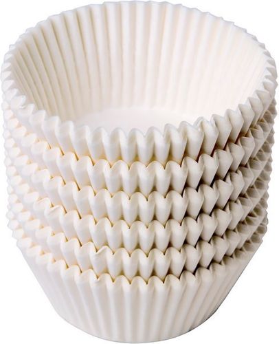 Zestaw 150 białych prostych papilotek w pudełku. Upieczone babeczki można podawać w papierowej papilotce lub przełożyć do ozdobnych kubeczków lub fartuszków.