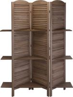 Parawan Intesi Simi wykonany został z drewna. Posiada po 3 półki na 3 poziomach wysokości. Parawan może być doskonałą ozdobą w kawiarni, salonu ale również hotelowego holu. Doskonale będzie wyglądać z ustawionymi na półkach roślinami czy ramkami. każda pólka posiada maksymalne obciążenie do 5 kg. Produkt wymaga montażu. Wysokość: 174