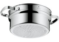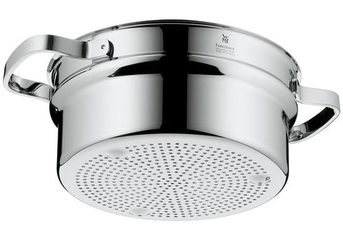 Wkład do gotowania na parze, wykonany ze stali Cromargan®, jest to stop metali opatentowany przez WMF, odporny na uszkodzenia i zadrapania. Posiada nienagrzewające się rączki i wypustki na dnie.