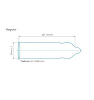 Prezerwatywy Regular posiadają anatomiczny kształt dopasowujący się do członka i pozwalający na wygodne założenie prezerwatywy. Dzięki wykonaniu z najwyższej jakości materiałów i rygorystycznej technologii produkcji prezerwatywy te są bardzo bezpieczne zarówno przy seksie waginalnym jak i analnym. Są nawilżane.