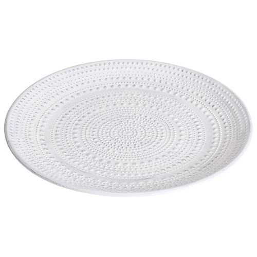 Okrągła patera wykonana z drewna w białym kolorze przecieranym na srebro. Ozdoba o uniwersalnym przeznaczeniu i eleganckim wyglądzie. Delikatne wypukłości na całej powierzchni, układają się w stylowy, charakterystyczny wzór. Gustowny, a przy tym praktyczny dodatek, który znajdzie zastosowanie w każdym domu. Zastosowanie jedynie do celów dekoracyjnych.
