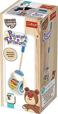 Wyjątkowy Pchaczek Turlaczek wykonany z jasnego, naturalnego drewna jest doskonałą zabawką ogólnorozwojową, która wydaje przyjemne dźwięki podczas turlania