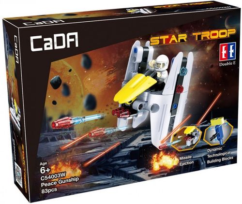 PeaceGunship - do zbudowania z klocków (C54003W) - to kolejny model z serii STAR TROOP. Futurystyczny model kosmicznego statkiu wojennego potrafiącego wystrzelić rakiety. W zestawie znajduje się model pilota.