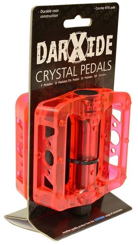 Lekkie przeźroczyste, platformowe pedały do BMX w kolorze czerwonym. Zapewniają dobre trzymanie i świetny wygląd w rowerze.
