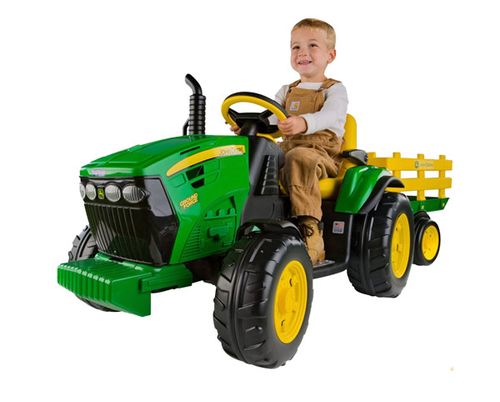 Największa i najwspanialsza zabawka dla chłopca traktor na akumulator - z dostępnych na rynku! Zielony Traktor dla dziecka John Deere, ta zabawka to spełnienie marzeń niejednego małego traktorzysty.Starannie wykonany, z dbałością o najmniejszy szczegół !!!Żaden Prawdziwy Farmer by takim nie pogardził :) Idealny prezent na każdą okazję!Traktory dla dzieci - parametry: jednoosobowe zabawki traktor na akumulator z przyczepą przeznaczony dla dzieci od 3 lat z napędem elektrycznym na akumulator 12 V ładowarka w komplecie cyfrowe radio FM doczepiana przyczepa jednoosiowa w komplecie napęd na dwa tylne koła regulowane siedzenie przód tył można dopasować do wzrostu dziecka nożny pedał gazu i hamulca 2 biegi (prędkości) do przodu bieg wsteczny blokada szybszego biegu dopóki dziecko nie nauczy się dobrze jeździć lewarek zmiany biegów gaz i hamulec w jednym pedale bezpieczny elektryczny hamulec pojazd hamuje, gdy dziecko puści pedał gazu ruchome dźwignie zabawowe po bokach siedzenia pokonuje wzniesienia do 10 % karoseria odporna na zabrudzenia realistyczne i bardzo staranne szczegóły wykonania najlepsze jakościowo, najciszej jeżdżące i najbezpieczniejsze pojazdy dla dzieci Pojazd dla dziecka do 40 kg, dane techniczne: Maksymalna prędkość: Pierwszy bieg - 3,2 km/h Drugi bieg - 6,5 km/h Wsteczny bieg - 3,2 km/hPo puszczeniu pe dału gazu pojazd, traktorek zabawka zatrzymuje się. Wymiary kół: - śr. 250/320 mmWaga: - 17,2 kgWymiary opakowania - 120 x 63,3 x 49,3 cm W skład zestawu wchodzi: Traktor na akumulator z przyczepą Akumulator: 12v-8Ah Ładowarka Bezpiecznik Instrukcja w języku angielskim/niemieckim