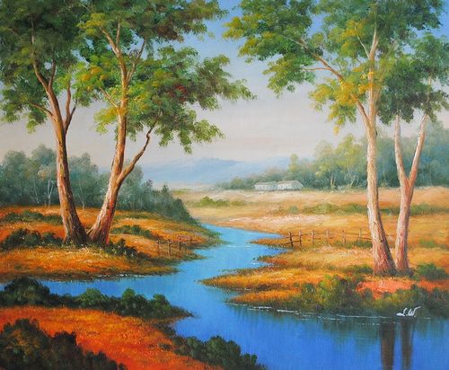 Ręcznie malowany obraz olejny przedstawiający klasyczną kompozycję krajobrazową! Praca charakteryzuje się atrakcyjną i ciepłą tonacją kolorystyczną. Oryginalna dekoracja malarska do tradycyjnych wnętrz!
