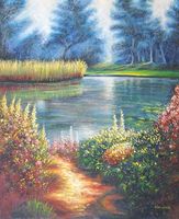 Ręcznie malowany obraz za pomocą pasteli olejnych na płótnie! Dostępny bez blejtramu. Obraz jest sygnowany. Przedstawia pejzaż o atrakcyjnej tonacji kolorystycznej i w przystępnej cenie!