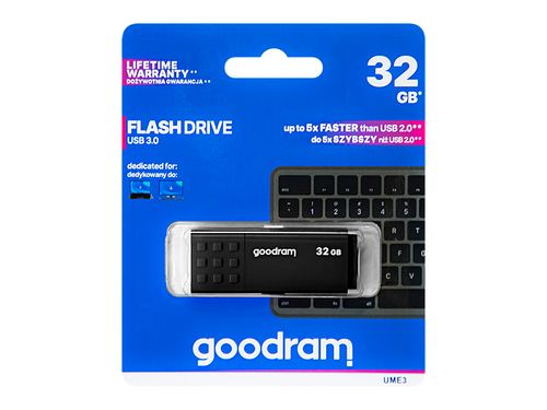 Pendrive marki GOODRAM z zatyczką z wypukłym antypoślizgowym wzorem ułatwiającym otwarcie USB w każdej sytuacji. Pamięć UME3 charakteryzuje się standardem USB 3.0 zapewaniającym szybkie przesyłanie danych oraz wyjątkowym, klasycznym designem.