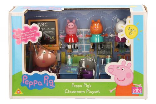 Razem ze swoim bratem Georgem oraz Mamą i Tatą Świnką Peppa codziennie przeżywa wiele przygód! Zestaw zawiera: 5 figurek, 2 ławki ze stolikami, tablicę.