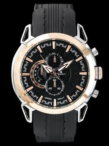 Kolorystyka: pasek w kolorze czarnym, koperta w kolorach srebrnym-rosegold, tarcza w kolorze czarnym, indeks w kolorze rosegold