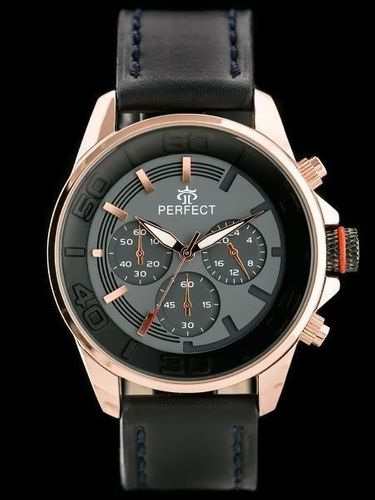 Kolorystyka: Tarcza w kolorze szarym, koperta w kolorze rosegold, pasek w kolorze czarnym z granatowymi przeszyciami