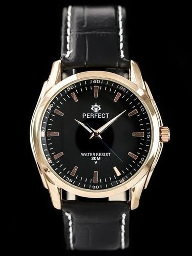 Kolorystyka: pasek w kolorze czarnym, koperta w kolorze rosegold, tarcza w kolorze czarnym, przeszycia w kolorze białym