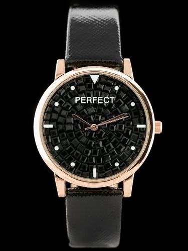 Kolorystyka: tarcza pokryta kryształkami w kolorze czarnym, pasek w kolorze czarnym, koperta i wskazówki w kolorze rosegold
