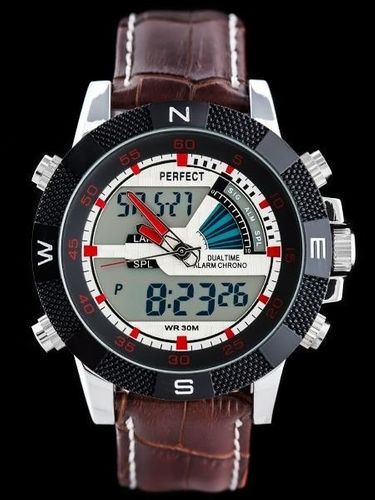 Kolorystyka: pasek w kolorze brązowym, koperta w kolorze srebrnym, tarcza w kolorze srebrnym, ring w kolorze czarnym, przeszycia w kolorze białym